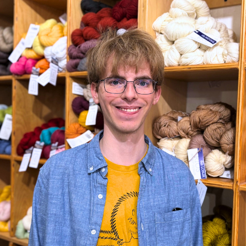 A Worthington native and true crafting Renaissance man, Zachary primarily knits, weaves, and embroiders, but he also loves to sew, felt, darn, spin, Tunisian crochet, and dye. He is thrilled to be working in an environment where his creative spirit flourishes and, most of all, is excited to engage with customers in the community who share his passion for yarn and fiber arts.