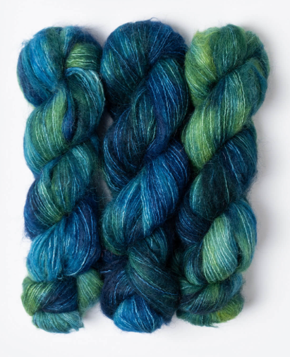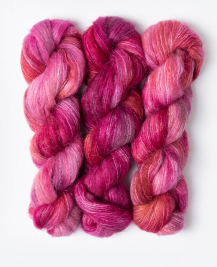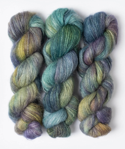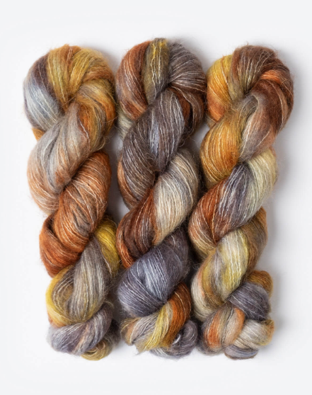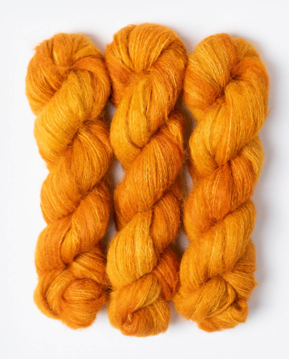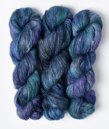 A unique, single-ply brushed suri yarn made from 100% alpaca. These 50g/273yds hanks are perfect to carry along with other yarns to create a feathery, soft halo, or on its own for light and airy garments and accessories.