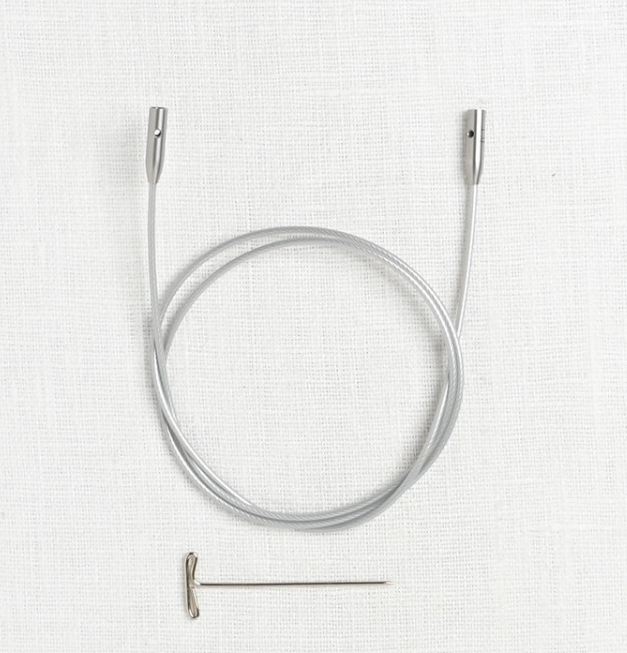 Have the right size needle at your fingertips when you need it. Silver in color, the flexible, nylon-coated, memory-free cords offer a lifetime of knitting delight. These cables offer a swivel feature so that needles rotate effortlessly, while maintaining a secure connection. Cables are constructed from multi-stranded steel for ultimate durability. The cables offer smooth knitting & transitions. Each cable has lifeline holes & comes with a tightening key.