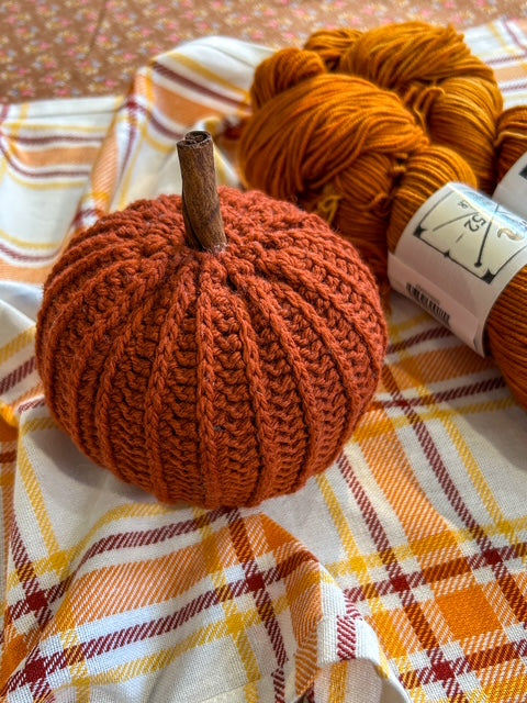 Join Rachael for our fall-themed crochet pumpkin class - each pumpkin features a cinnamon stick stem! This is an Intermediate level crochet class, as students in this class will develop pattern reading skills, learn about working in the 3rd loop, and tackle unique construction skills.