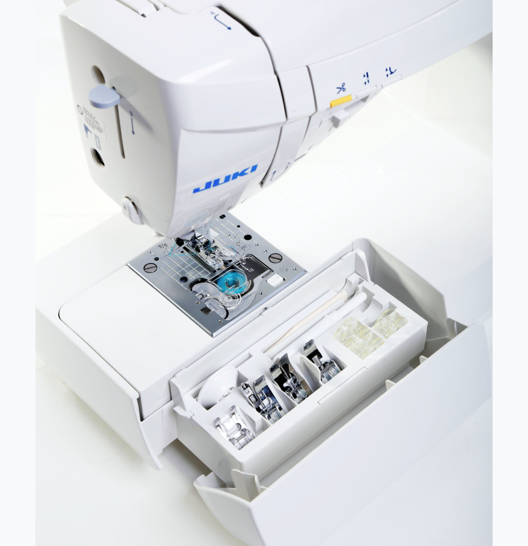 - Buttonhole Sensor System: With Juki’s combination of industrial and modern technology, this system automatically measures and evenly sew on both the right and left sides to create beautiful buttonholes.