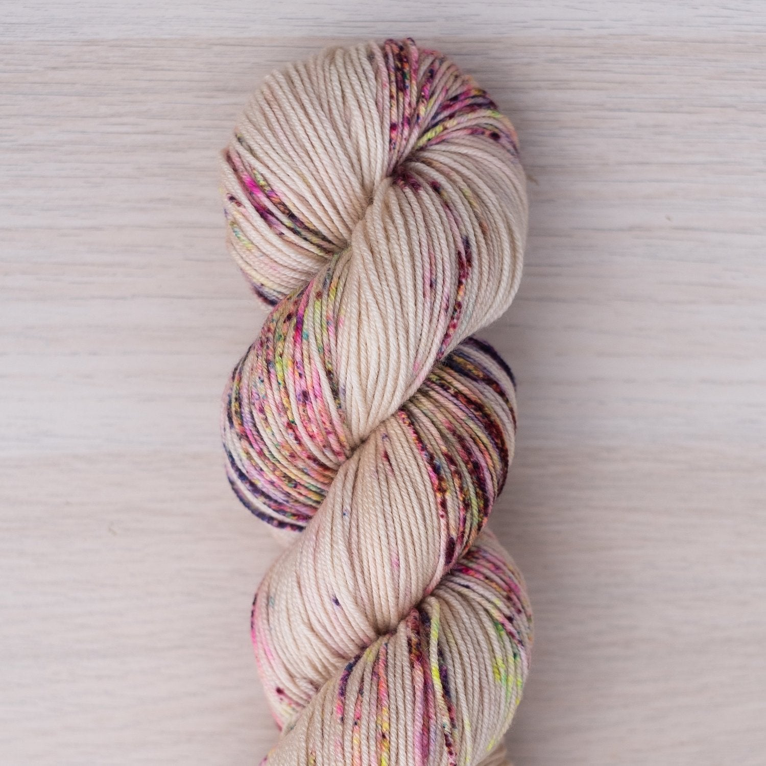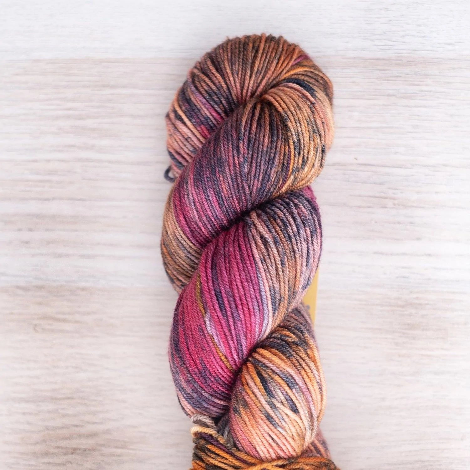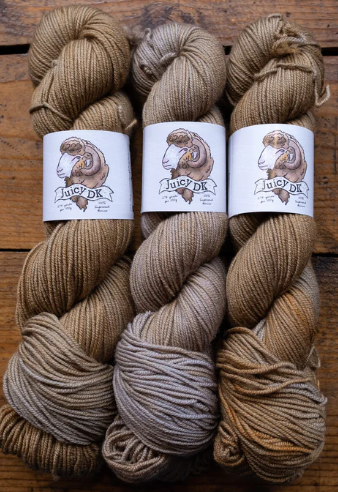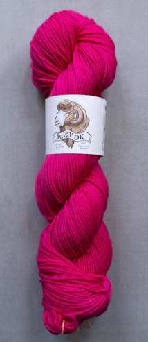 A light DK, heavy Sport weight the stitch definition is impeccable! You can use Juicy for any fiber arts project; sweaters, hats, scarfs, shawls, socks, she does it all. Very soft and our hand dyed colors show up beautifully.