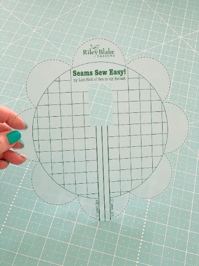 New and improved! The center is now precut to give you a smooth surface for sewing. Lori Holt designed her Seams Sew Easy™ Seam Guide for an accurate 1/4" seam and for constructing easy corner triangles. This tool saves time by not having to mark lines on your fabric when sewing half square triangles, flying geese or snowballs. The center circle of the guide is also marked with 1/2" grid lines for a wider seam allowance. This is a seam guide that temporarily adheres to the bed of any sewing machine. These grid lines also help to ensure correct placement when adhering to your sewing machine bed.