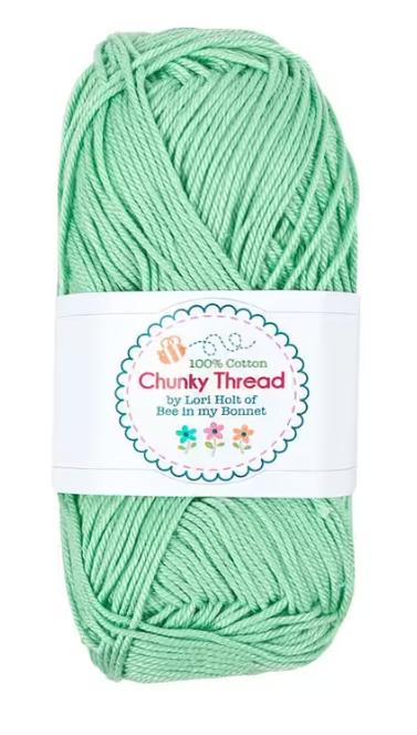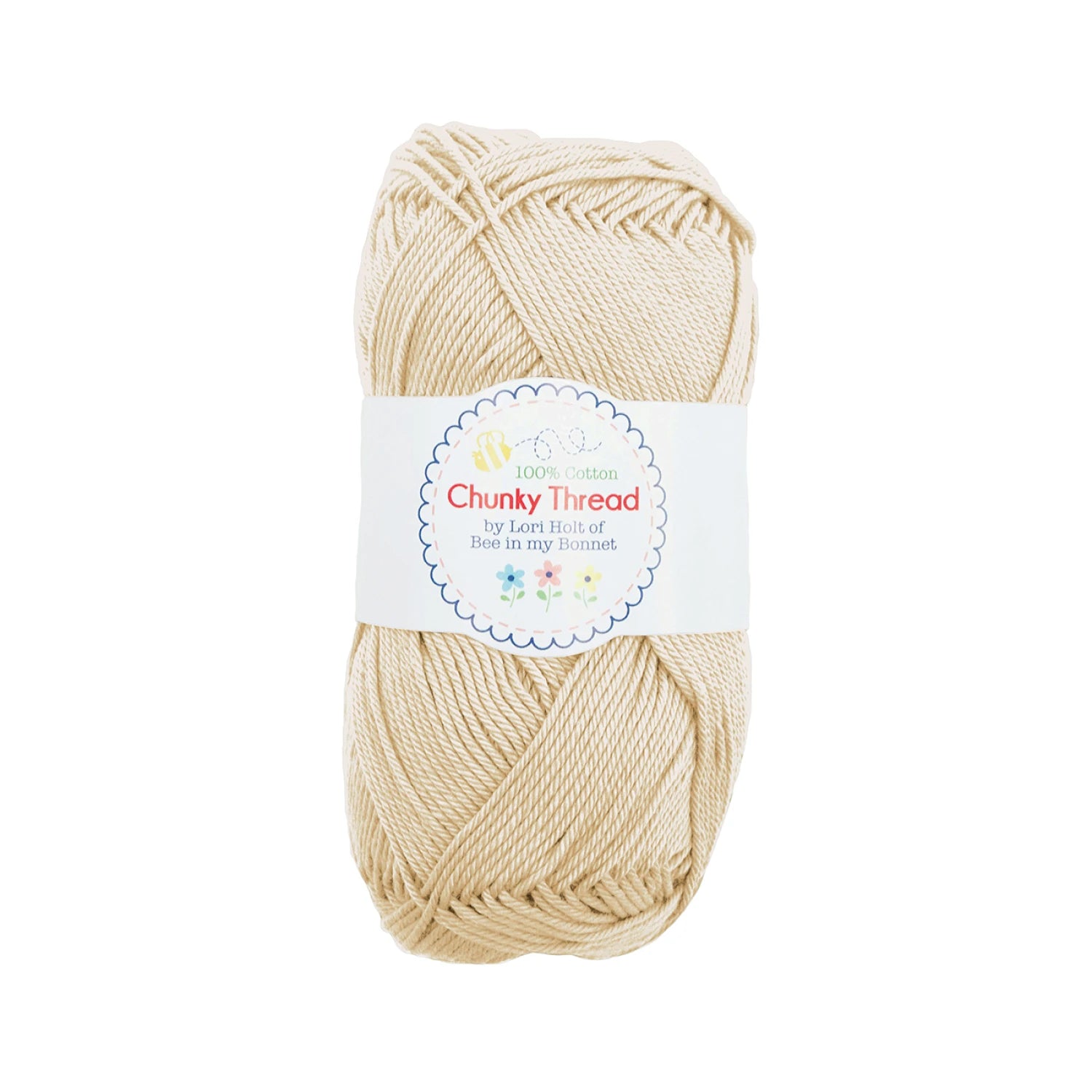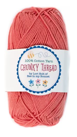 Lori Holt's Chunky Thread is 100% cotton and is sport weight. It's perfect for knitting, crochet or crafts. 50 gram skein.