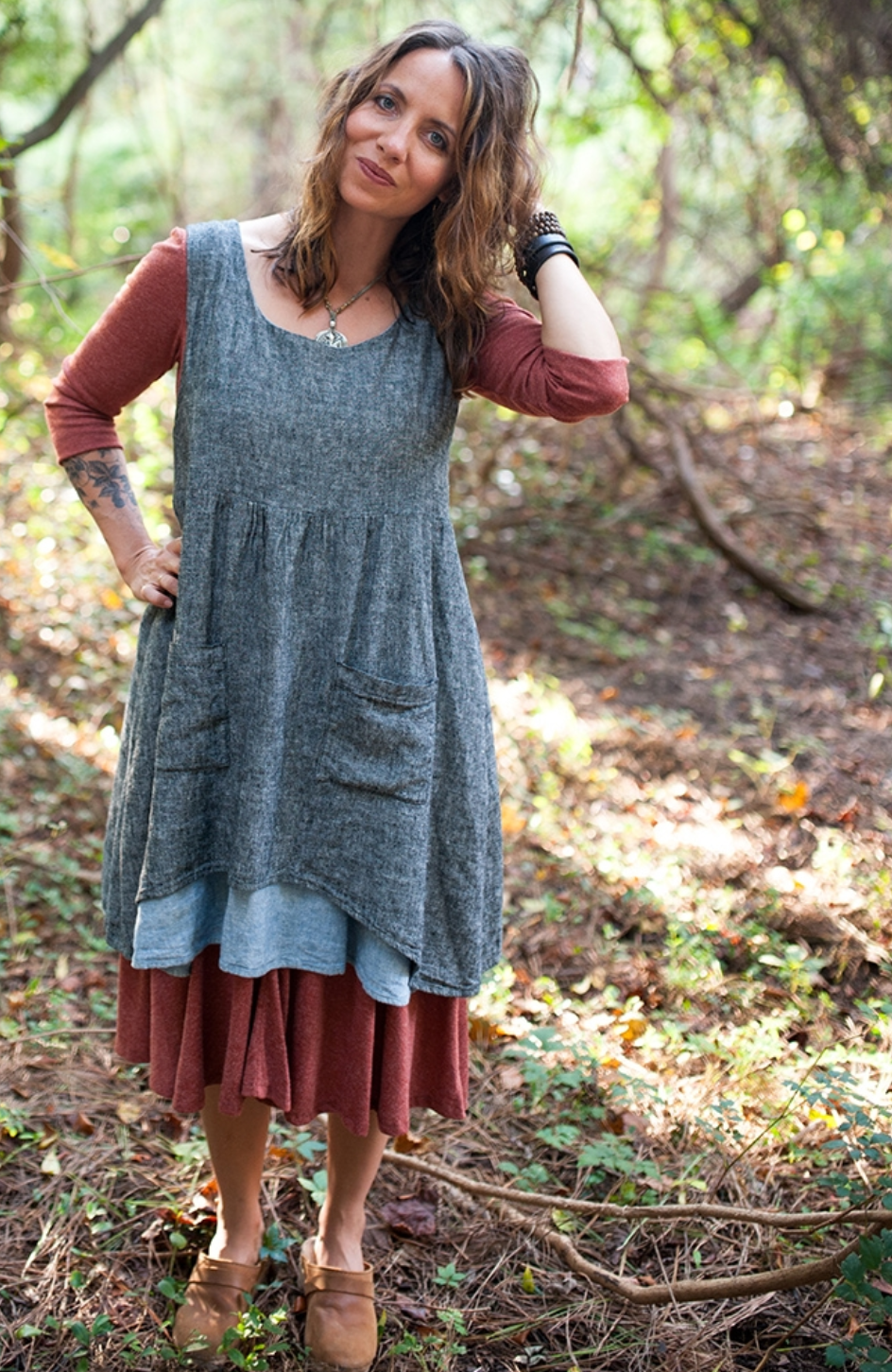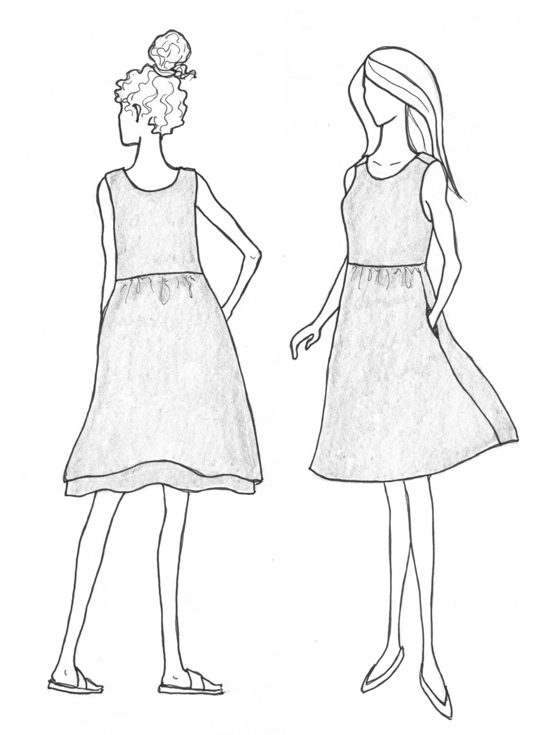 By Meg McElweeThe Metamorphic Dress is the perfect, beginner-friendly class project! Each pattern features an instruction booklet and pattern pieces printed on a nice, thick paper, enclosed in a lightweight, full-color cardboard box (9in x 6in x 1/2in thick.) A truly beautiful (and useful) packaging for shop display! The Metamorphic Dress is a wardrobe-building dress for all seasons. Featuring a high/low waist seam and complete reversibility, it's inspired by the possibility of layers - wear it with the tiered skirt and patch pockets, or flip it inside out and enjoy a basic, single-layer pinafore with in-seam pockets. Layer it over jeans, leggings, or a midi-length Stasia Dress, or layer it under your favorite woven tee or knitted cardigan. Wear it on the beach over your swimsuit or favorite short-sleeve, fitted knit tee. The fit is easy, with no bodice darts and plenty of room for the waist. (It is drafted for a D-cup and below.)
