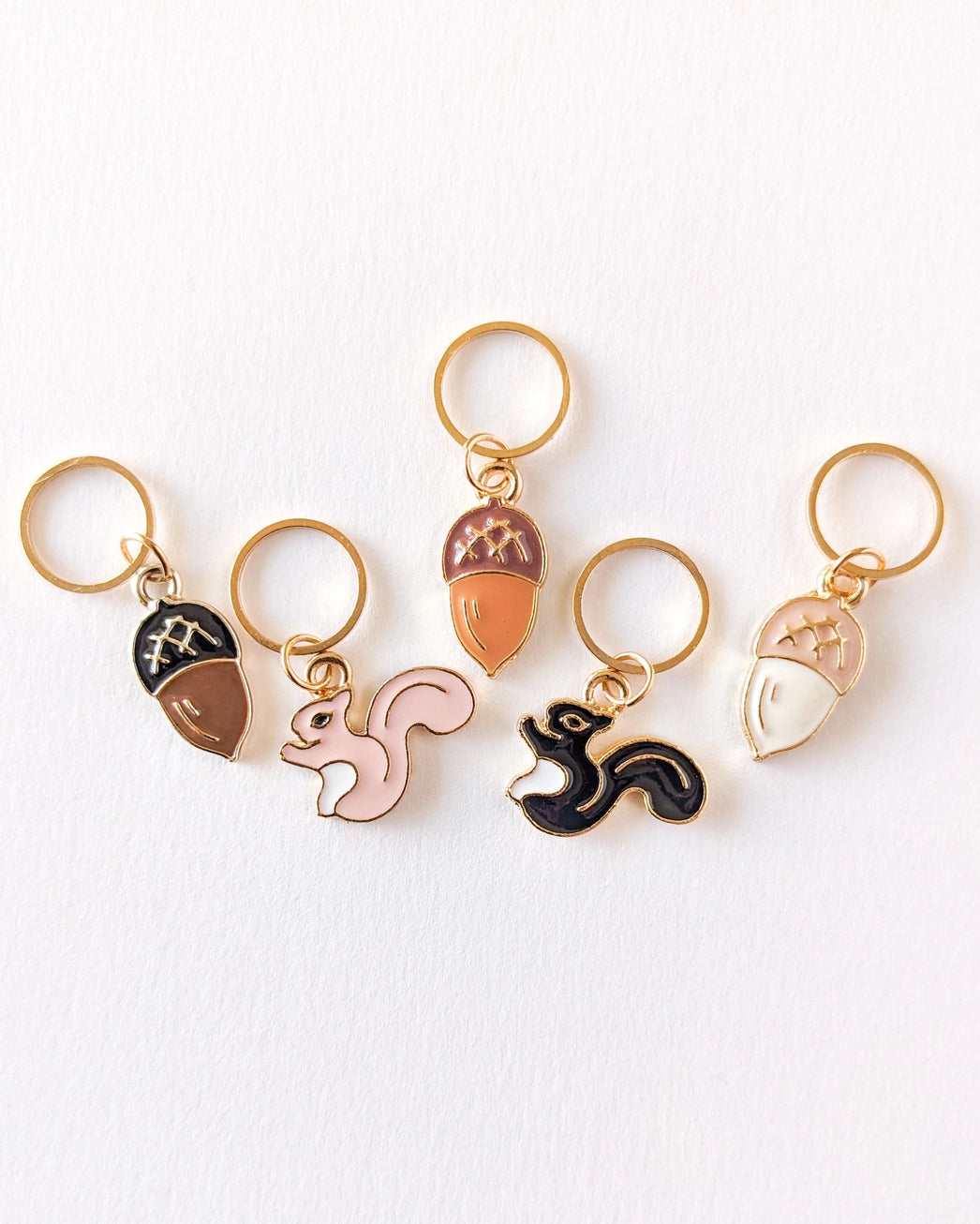 • Squirrels (15 x 18 mm) • Tassels (9 x 19 mm) • Total length with ring: between 30 and 31 mm • 12 mm rings for needles up to 9 mm