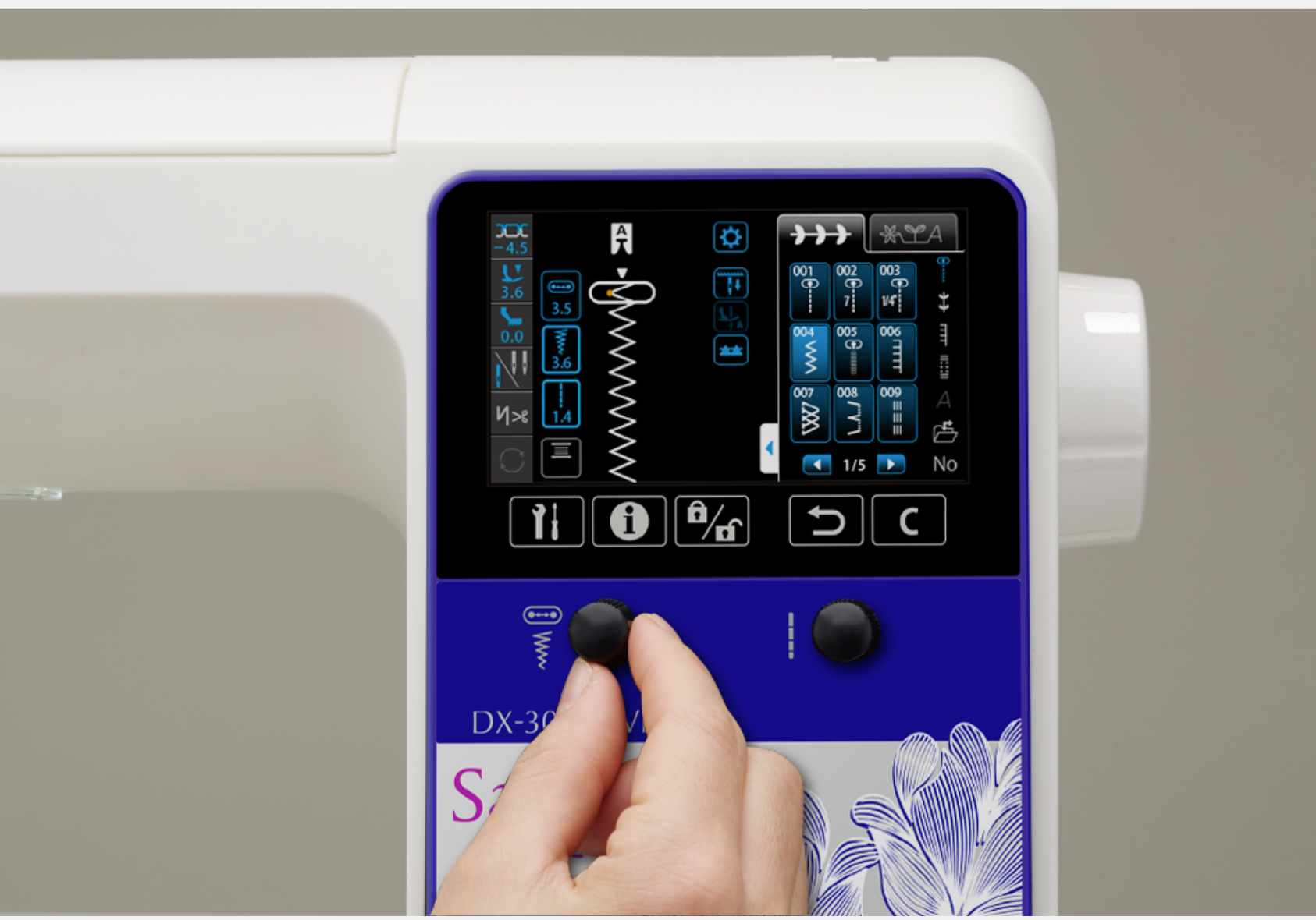 Continuing JUKI's characteristic of commitment to high performance and functions, the DX-3000 provides a wide sewing area, touchscreen interface, and a multitude of other functions!