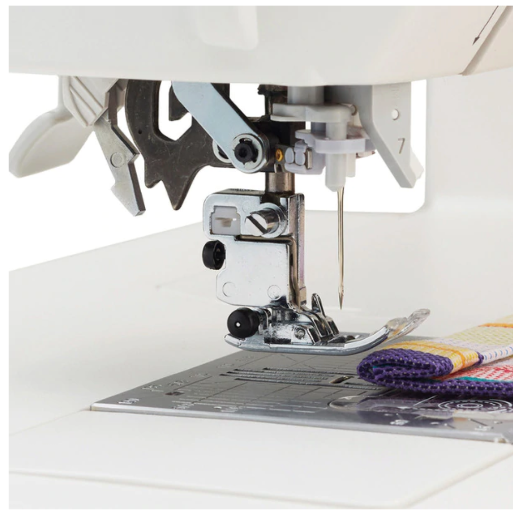 All control is at your fingertips with the Touch Screen Control and the Dual Feed is built in, eliminating the need for a bulky walking foot.