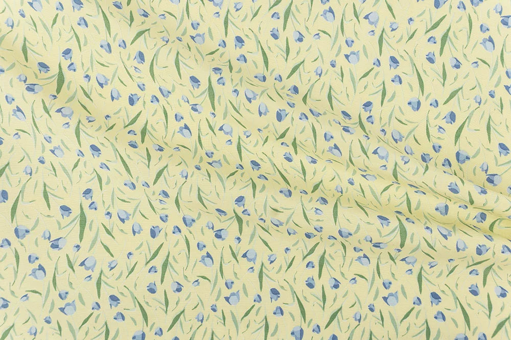 Rayon Margaret Prints: Blue Tulips on Yellow