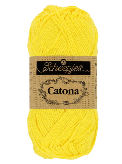 The widely popular Scheepjes Catona yarns have become a go-to yarn for many crafters. Made from 100% Mercerised Cotton, this Fingering weight yarn is naturally breathable and characterised by a soft, delicate sheen and a smooth and supple touch. Create a range of garments, amigurumi, accessories, homeware items and toys for kids with this indispensable yarn! Being EN71-3 certified, Catona is safe to use by those with a sensitive touch such as babies or children, not to mention that this yarn is produced using recycled waste water, offering a more sustainable choice as well for eco conscious crafters. Available in an enormous range of 113 colours, enjoy endless colour combinations with Scheepjes Catona.