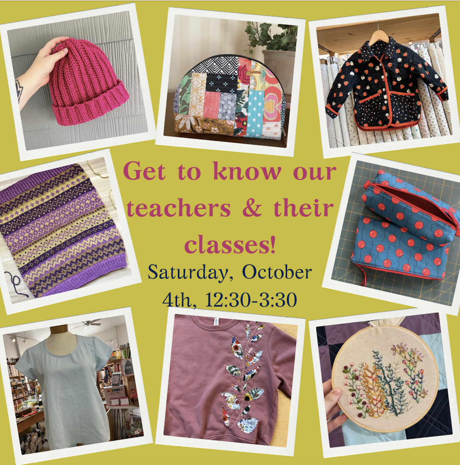 Meet your new favorite instructors at the Sew to Speak Class Showcase on Saturday, October 4th from 12:30-3:30pm in the Sew to Speak Classroom.