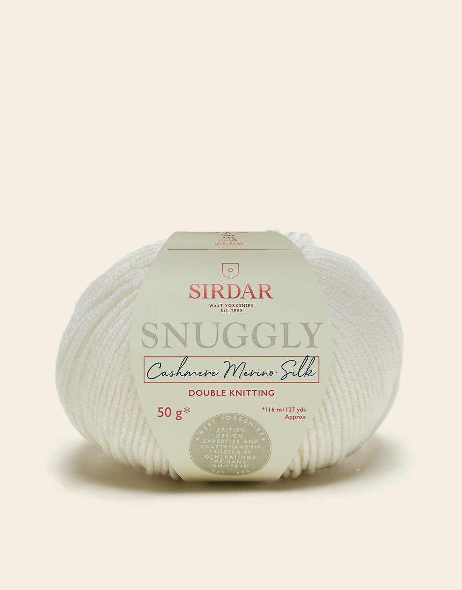 Snuggly Cashmere Merino Silk in double knitting weight is an extra special cozy yarn for precious babies. A blend of soft cashmere, smooth silk and extra fine merino wool, this gentle, machine washable yarn is kind to sensitive skin. A palette of fairy tale shades combines classic baby pastels with deeper baby shades for contemporary knit and crochet designs.