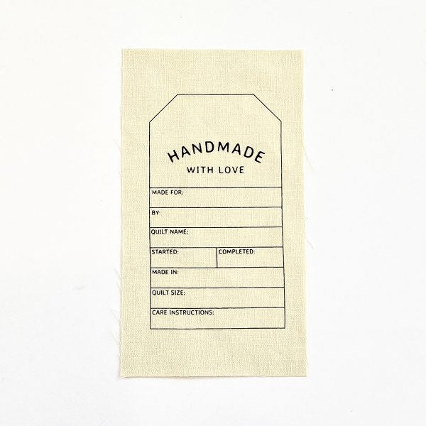 3 pack Swing Tag Quilt Labels on The Strawberry Thief Bone Linen.