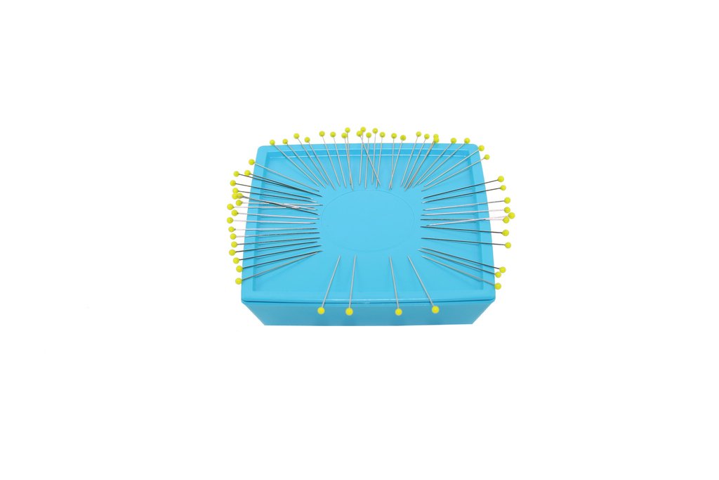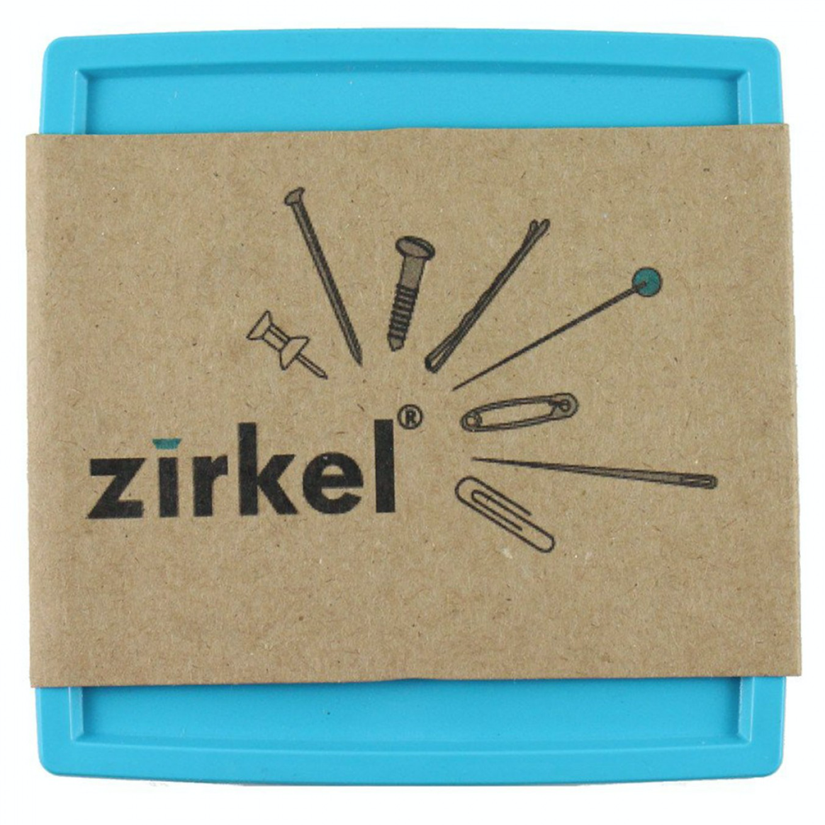 Any item attracted to a magnet is immediately drawn to the outside edge of the Zirkel® and displayed in a sunburst pattern. For instance, if a quilting pin is dropped sharp side down then the head of the pin will sit along the edge. If the pin is dropped "head first" then the sharp side will sit along the edge. Either way the items are dropped, they will always lay out in a flat sunburst pattern for easier pick up.